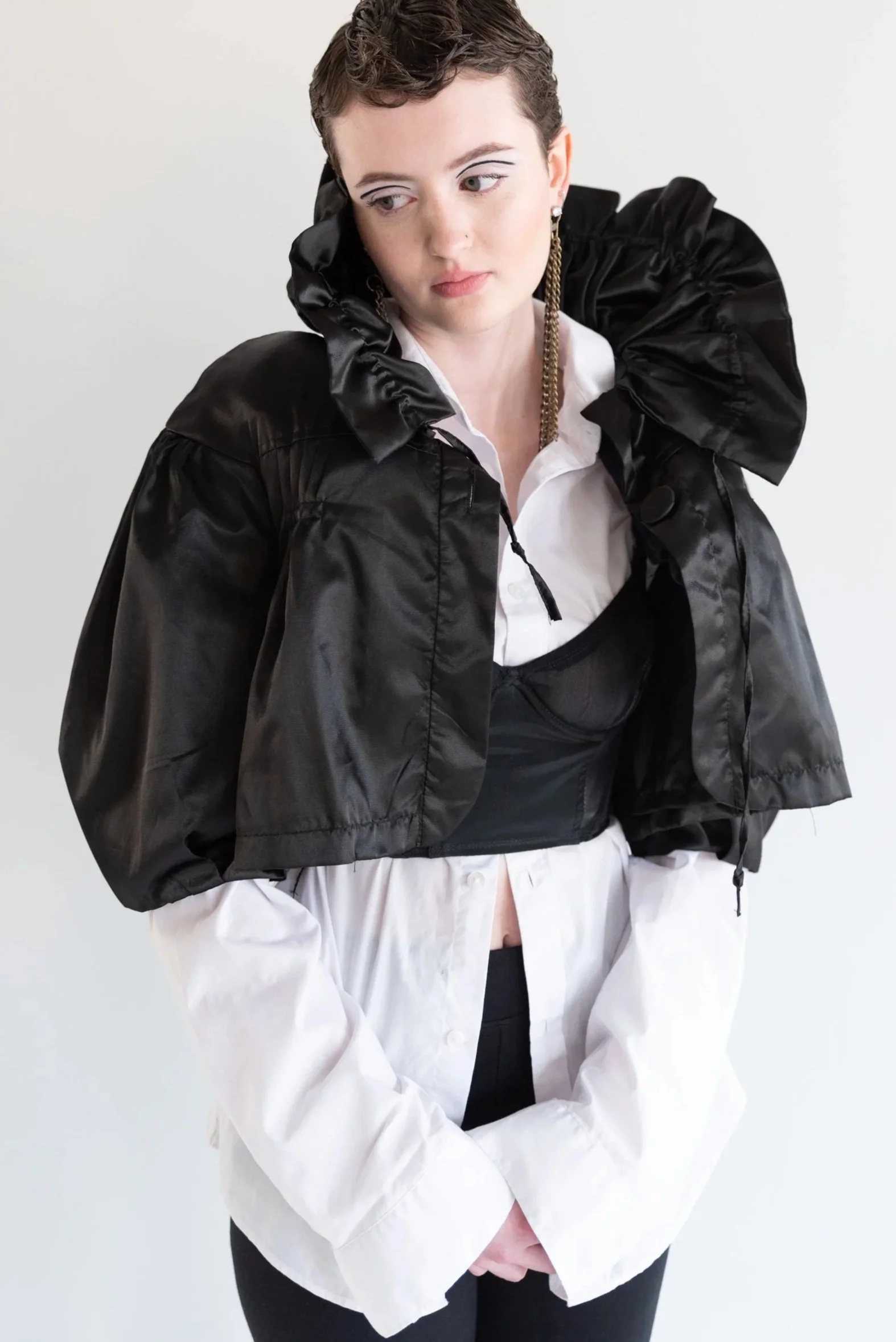 I’m drawn to contrast, texture, and restraint—sheer layers meeting grounded elements, softness edged with something punk. Sometimes it’s about tension; sometimes it’s about letting the clothes speak without interruption.